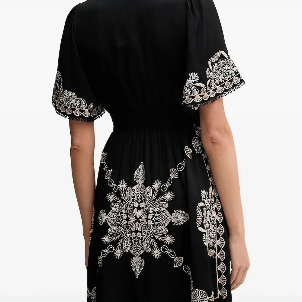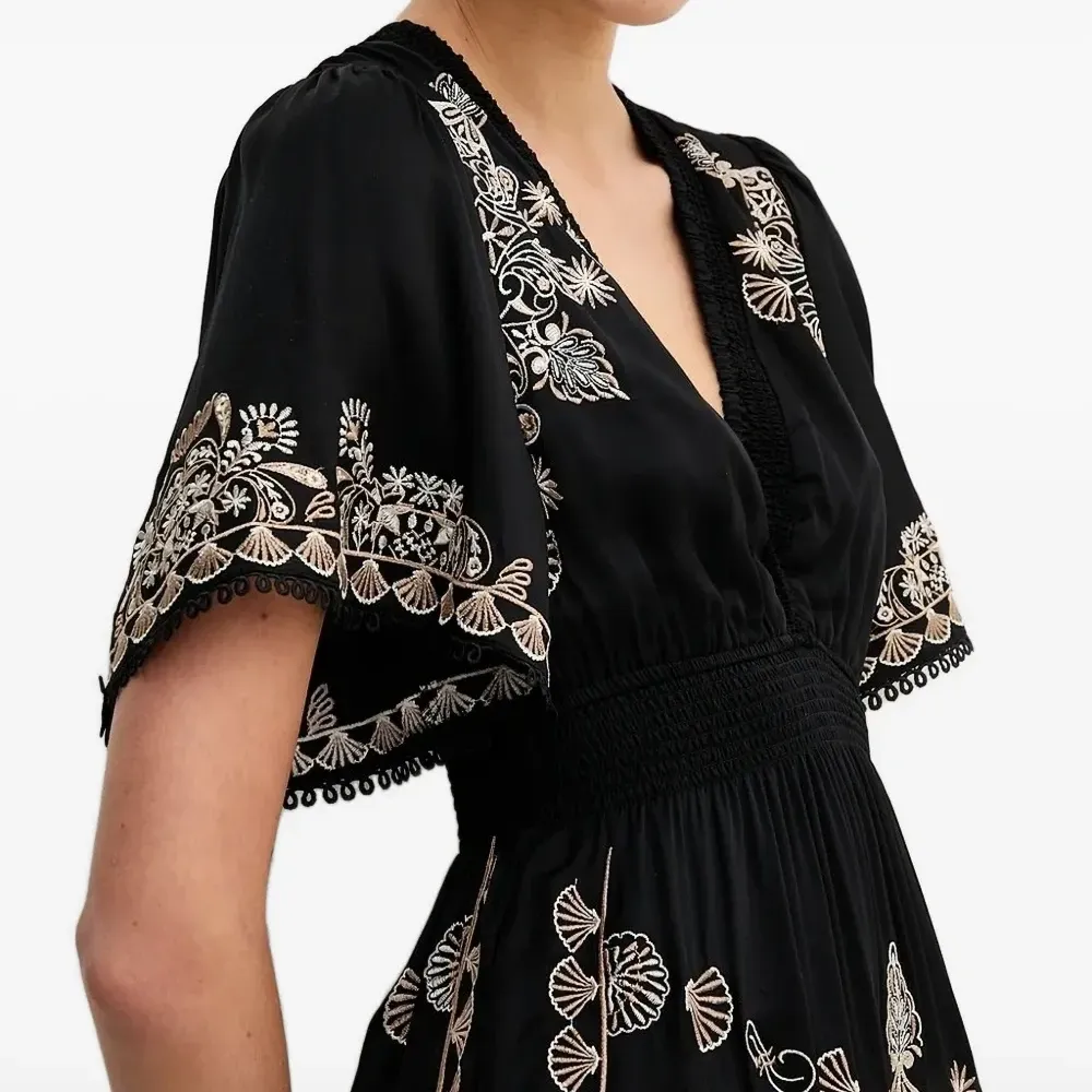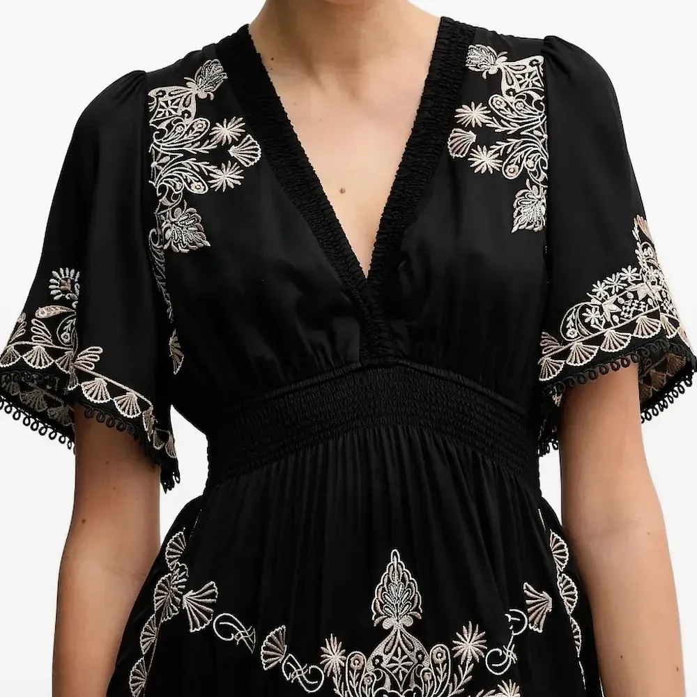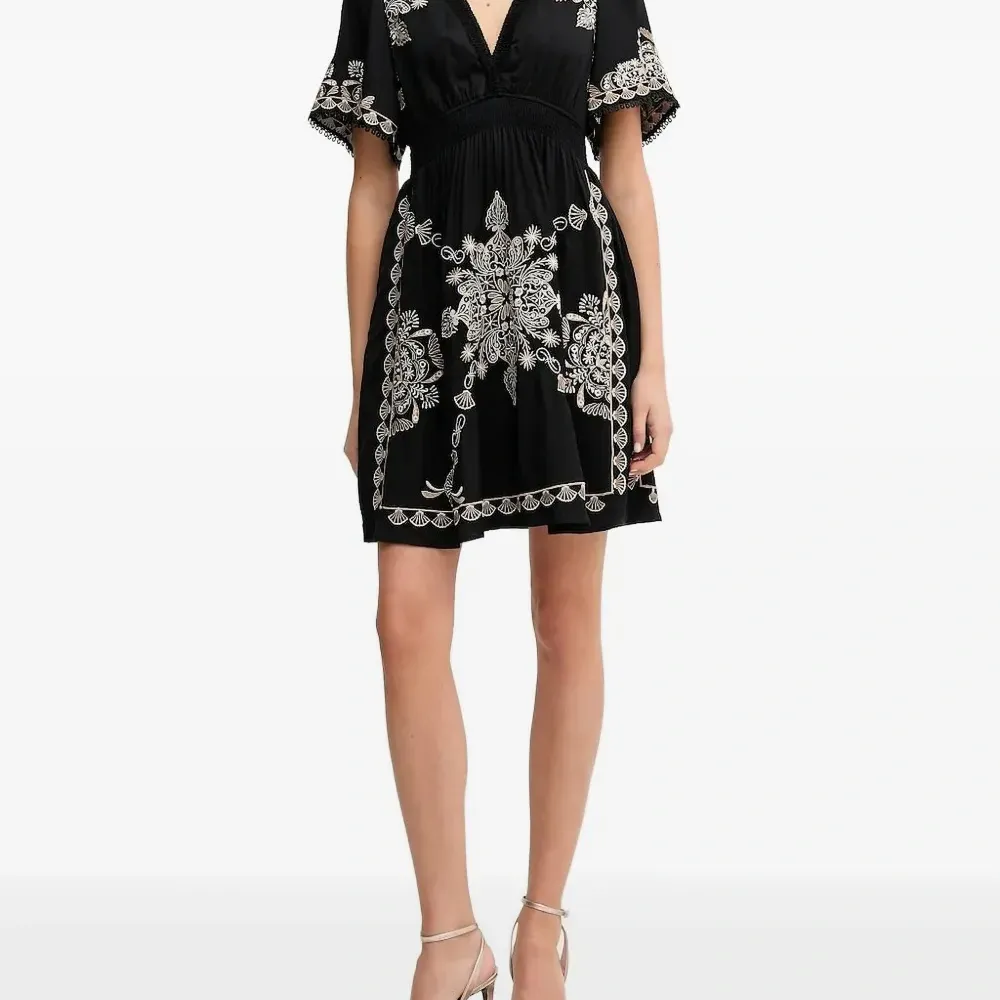Платье мини с V-образным вырезом и цветочной вышивкой