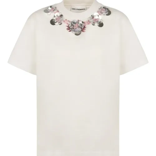 Футболка с круглым вырезом, украшенная бусинами