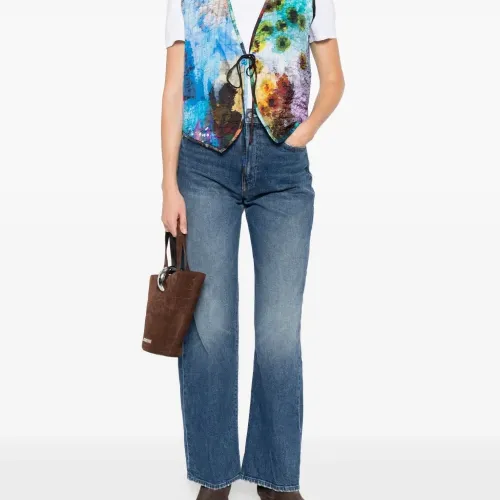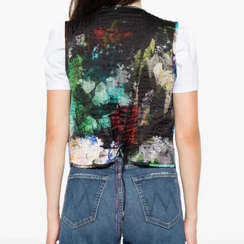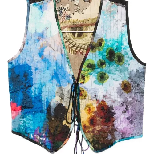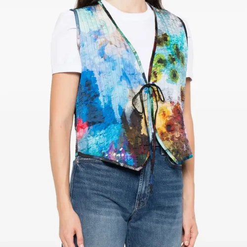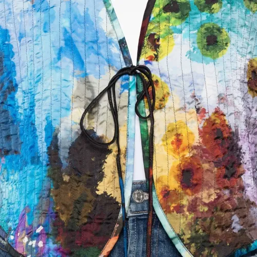 синий цветочный принт застёжка на завязках спереди без рукавов отделанные края