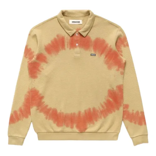 желтая и оранжевая отделка с принтом, нашивка с логотипом на груди, классический воротник, застежка на пуговицы спереди, длинные рукава