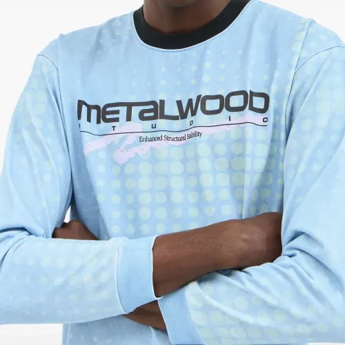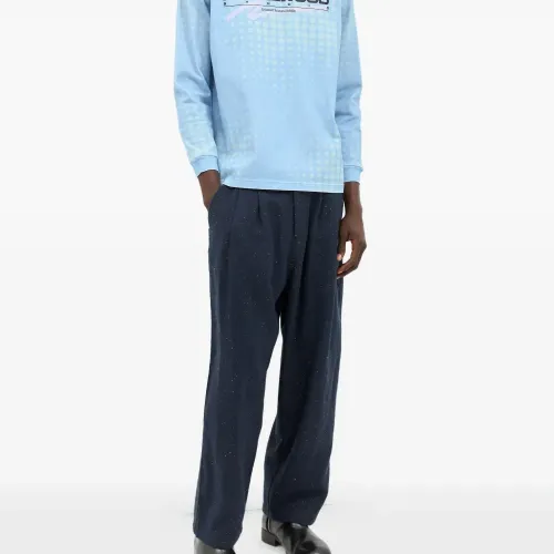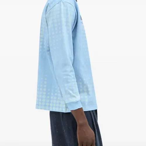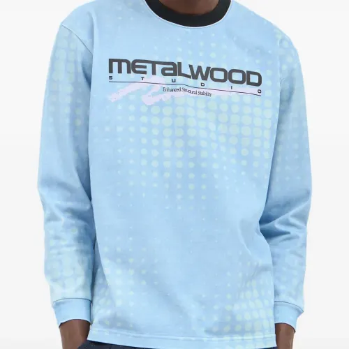синий свитшот с круглым вырезом, графическим мотивом и принтом-логотипом, длинные рукава