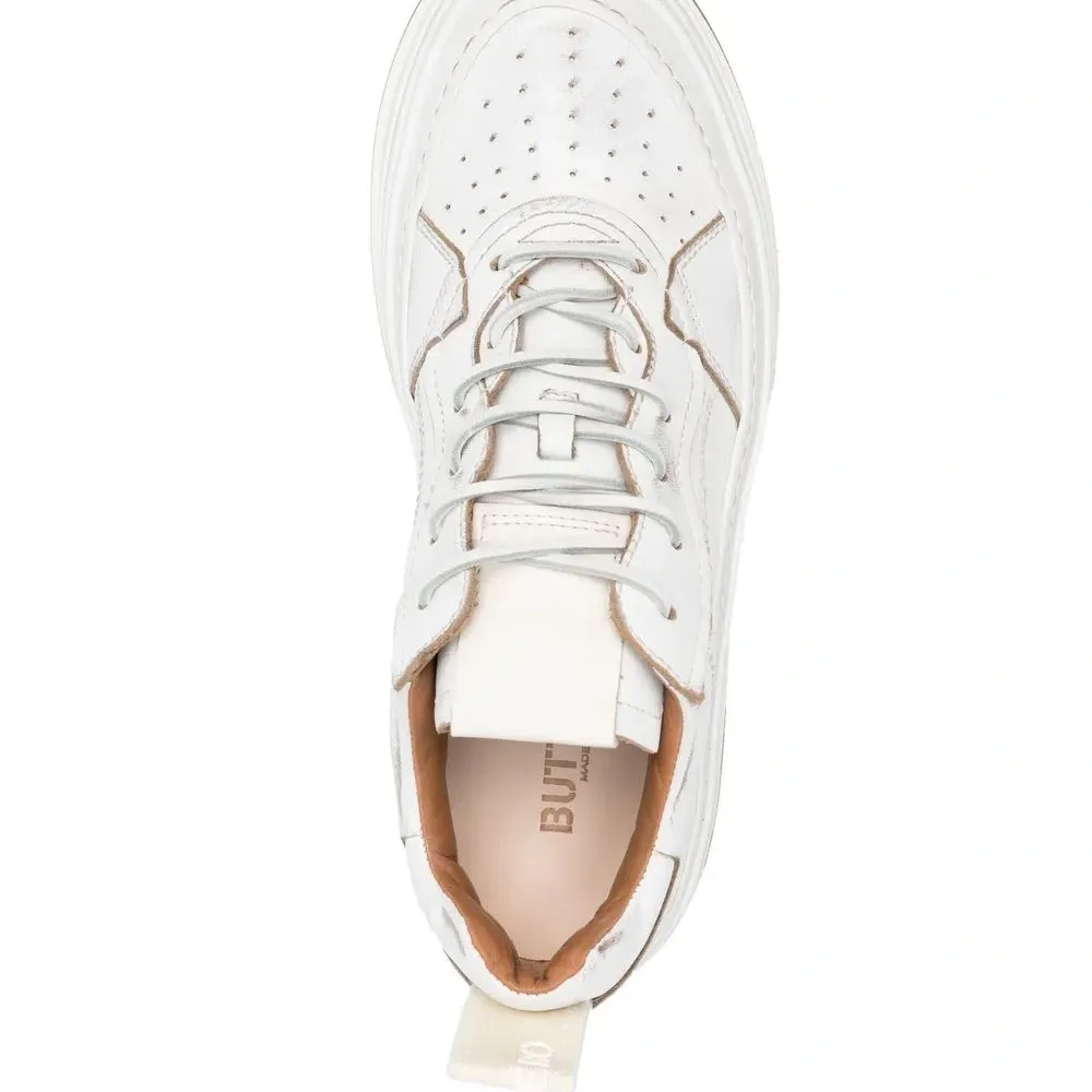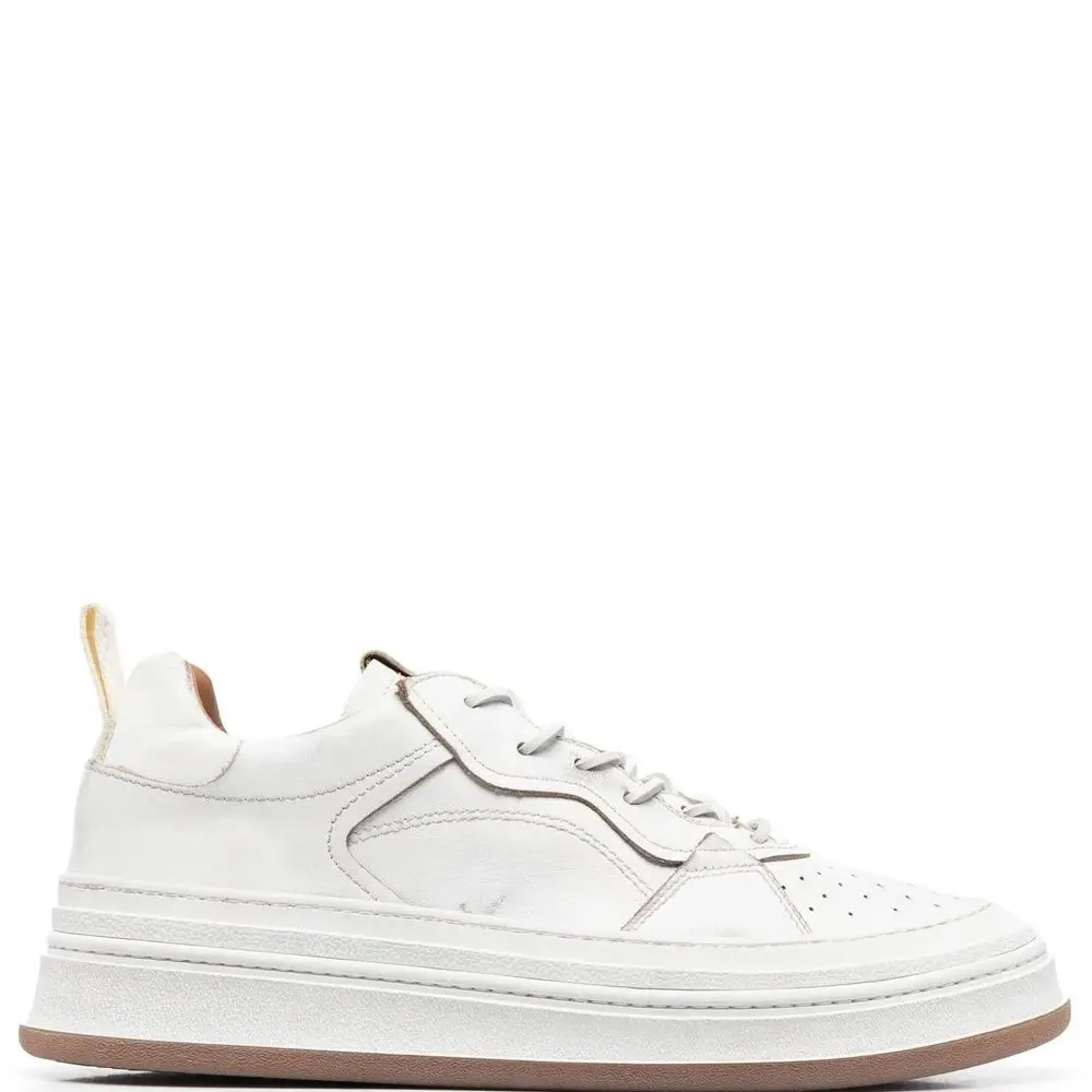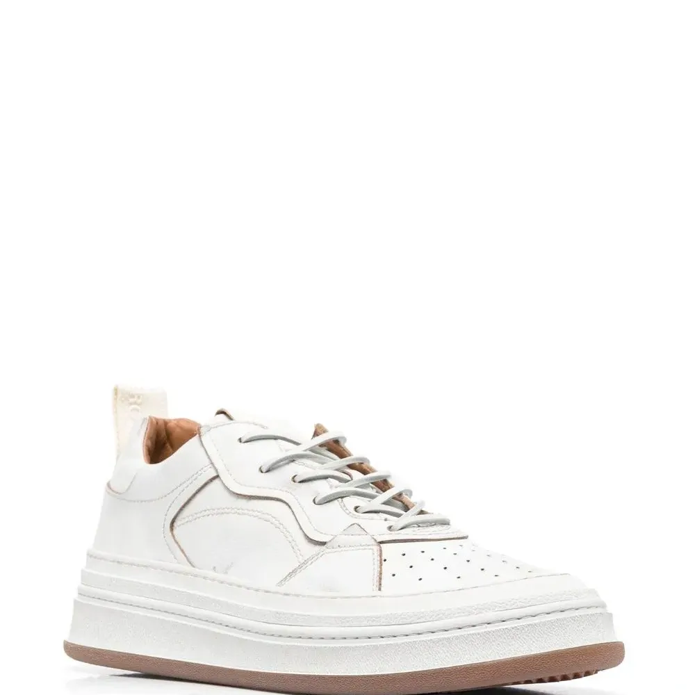 Кремовый, кожа, перфорированный носок, закругленный носок, шнуровка спереди, петля для подтягивания сзади и плоская резиновая подошва.