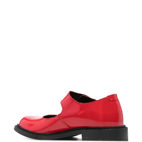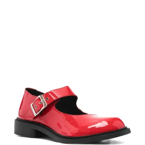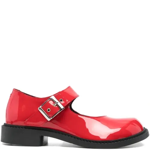 красный лакированная кожа застежка-пряжка круглый мыс плоская подошва