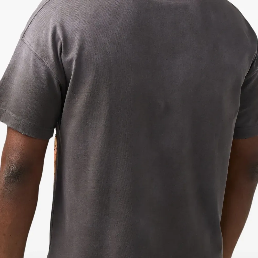 серый/оранжевый, графический принт, короткие рукава, круглый вырез