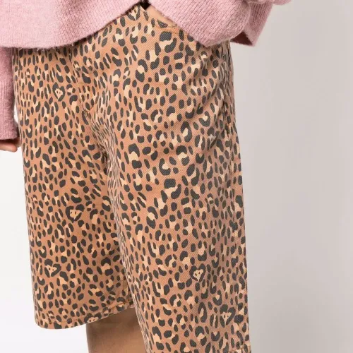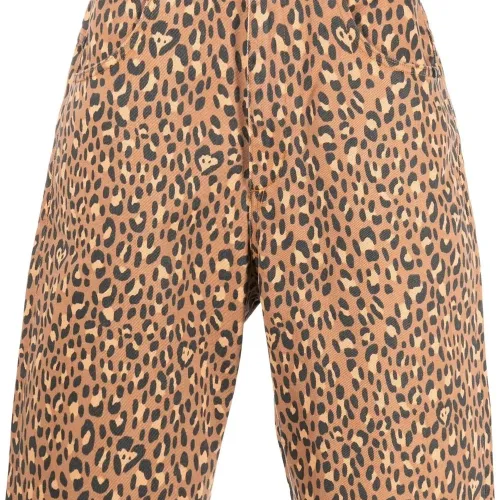 Прямой крой, сплошной леопардовый принт, средняя посадка, петли для ремня, застежка на молнии и пуговице спереди и классическая пятикарманная модель.