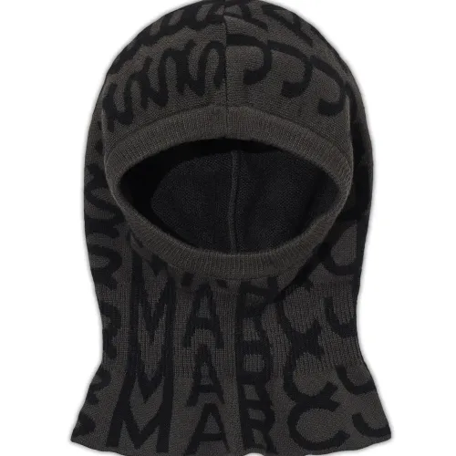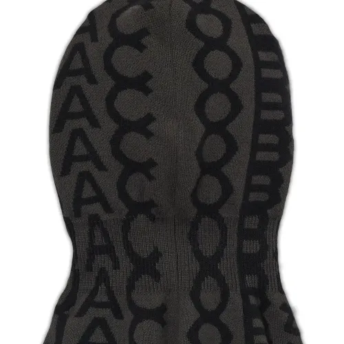Черный, темно-серый, эластичная шерсть, трикотажный материал, тонкая вязка, узор с изображением монограммы, однотонная расцветка и вязаные края в рубчик.