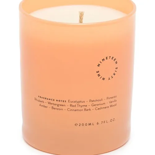 Желто-оранжевый, логотип спереди, фитиль из хлопка, эвкалипт, пачули, ваниль и корица.