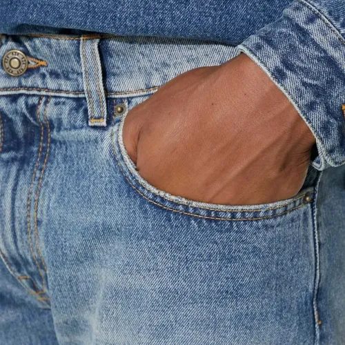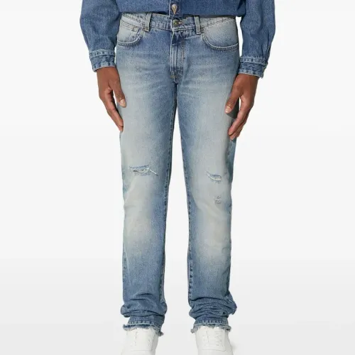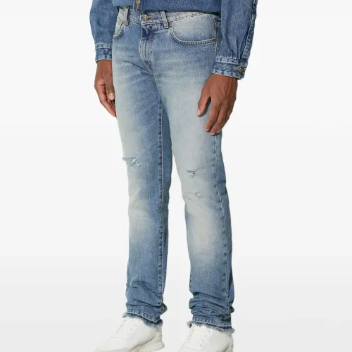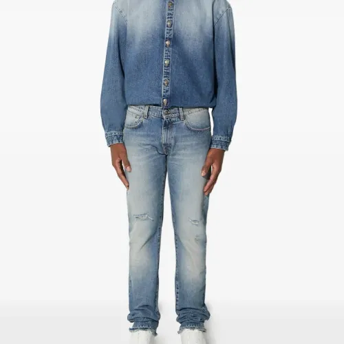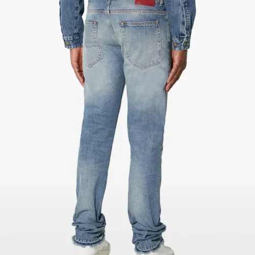 Джинсы с эффектом потертостей и необработанным краем