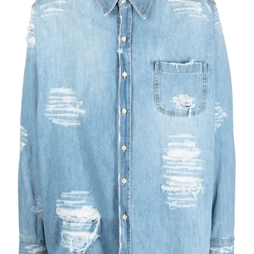 Джинсовая рубашка с эффектом потертости