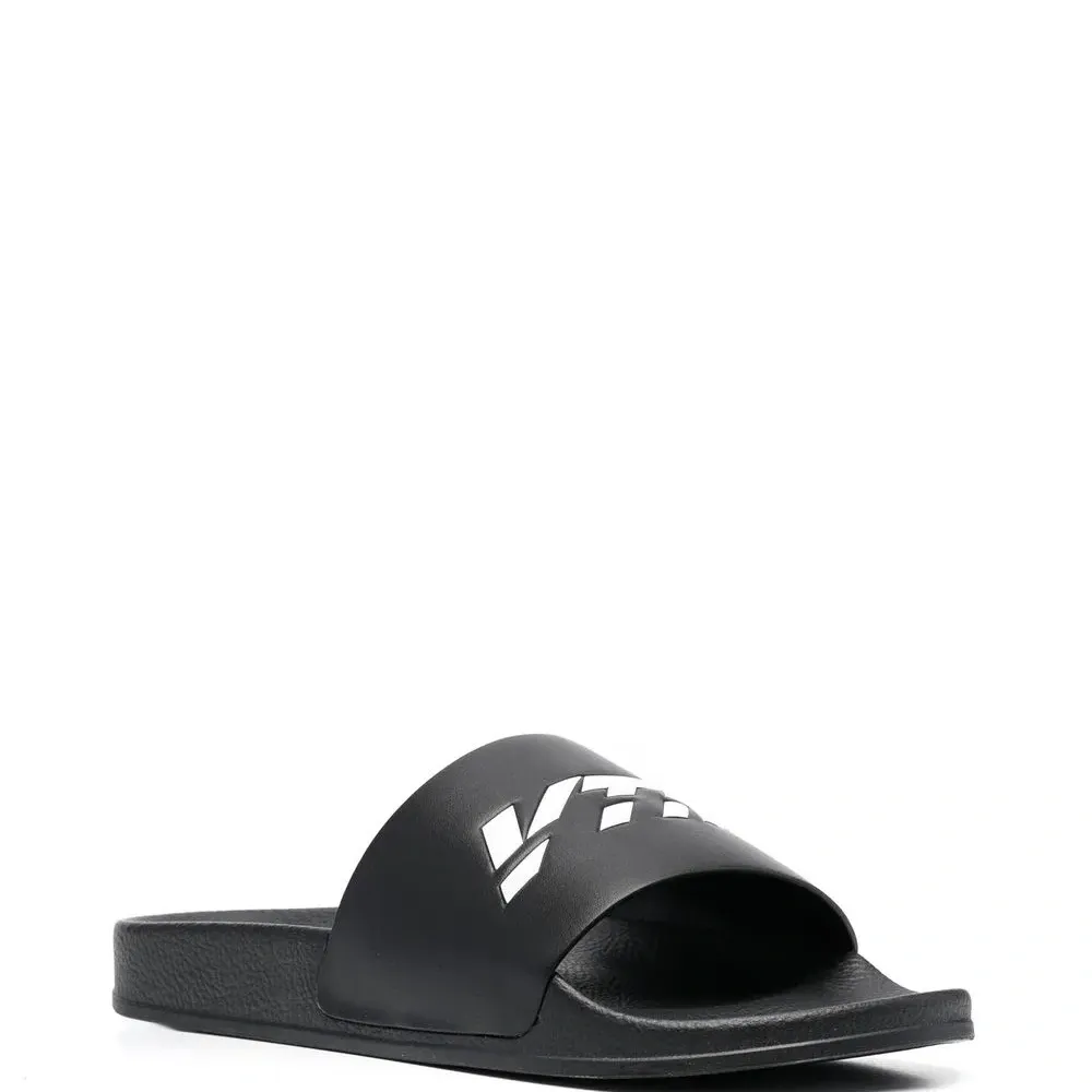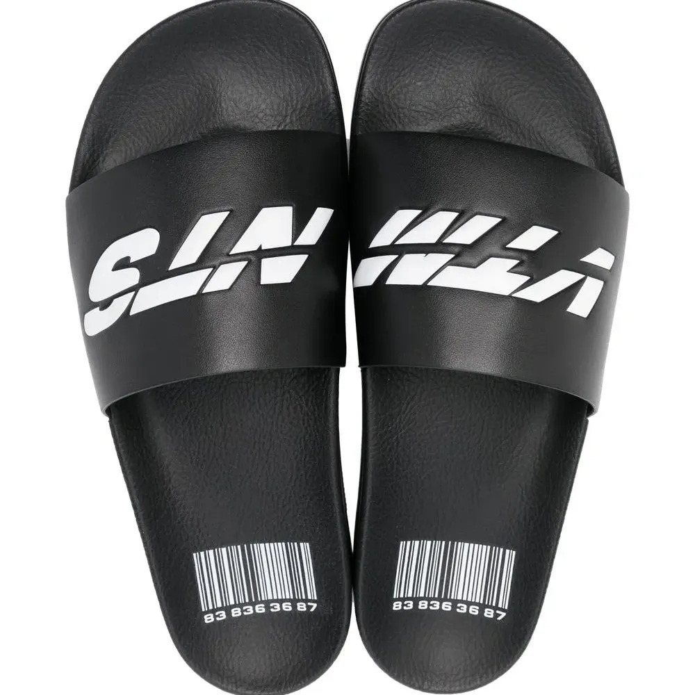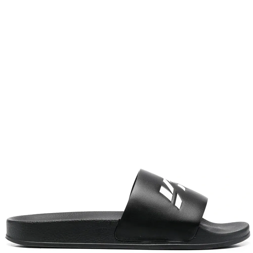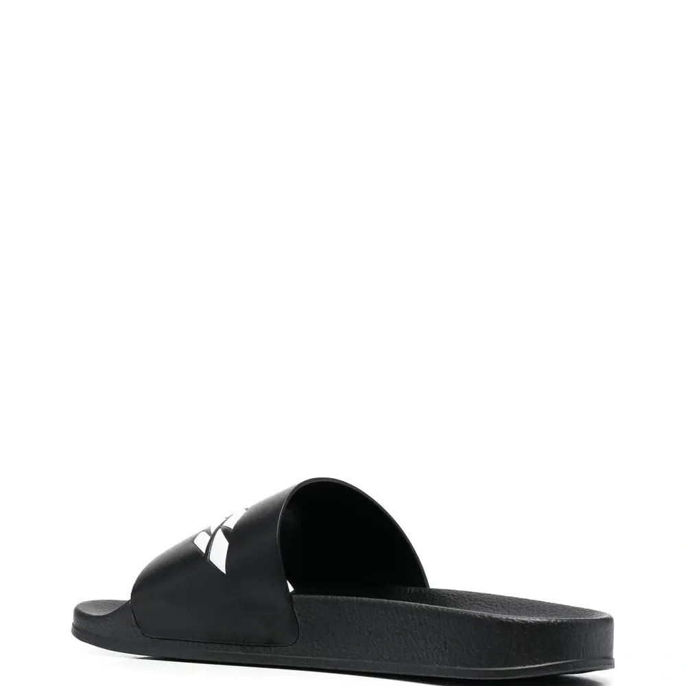 Логотип спереди, модель без застежки, открытый носок и плоская подошва.
