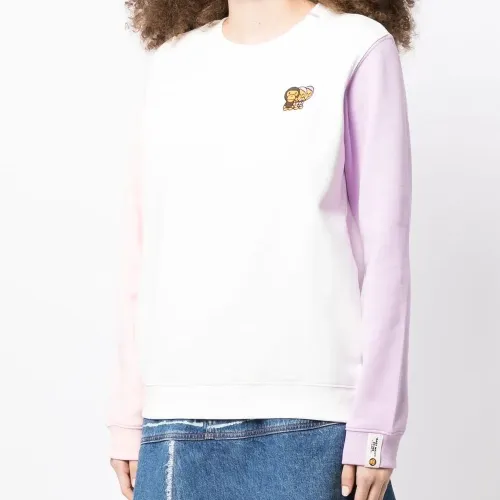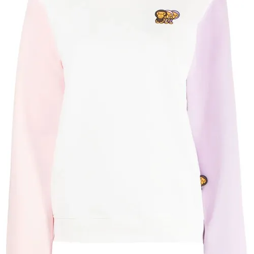 Белый/разноцветный, смесовый хлопок, вышитый логотип на груди, дизайн колор-блок, круглый вырез и длинные рукава.
