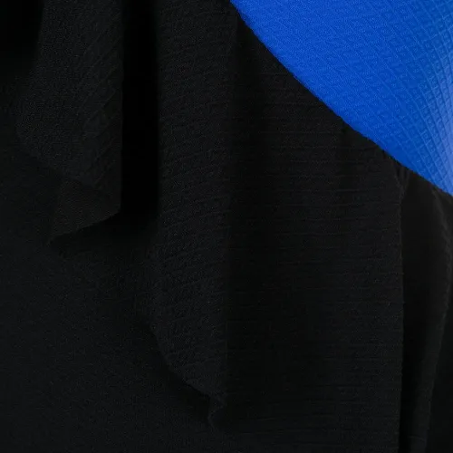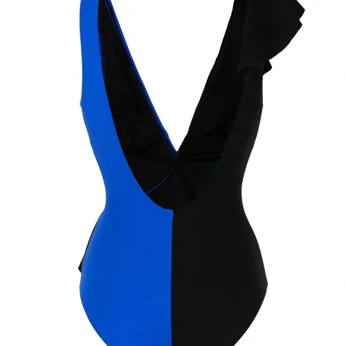 Сочетание двух оттенков, фактурная отделка, вставки с оборками, V-образный вырез и модель без застежки. Пожалуйста, примеряйте купальники и пляжные шорты только поверх собственного белья.