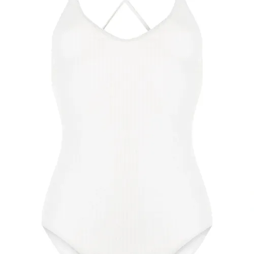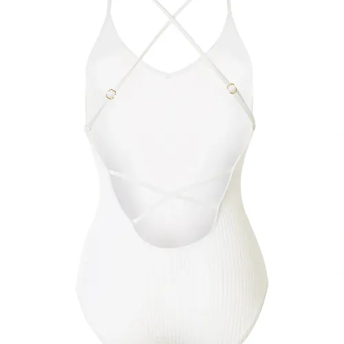 U-образный вырез, перекрестные ремешки и облегающий крой. Пожалуйста, примеряйте купальники и пляжные шорты только поверх собственного белья.