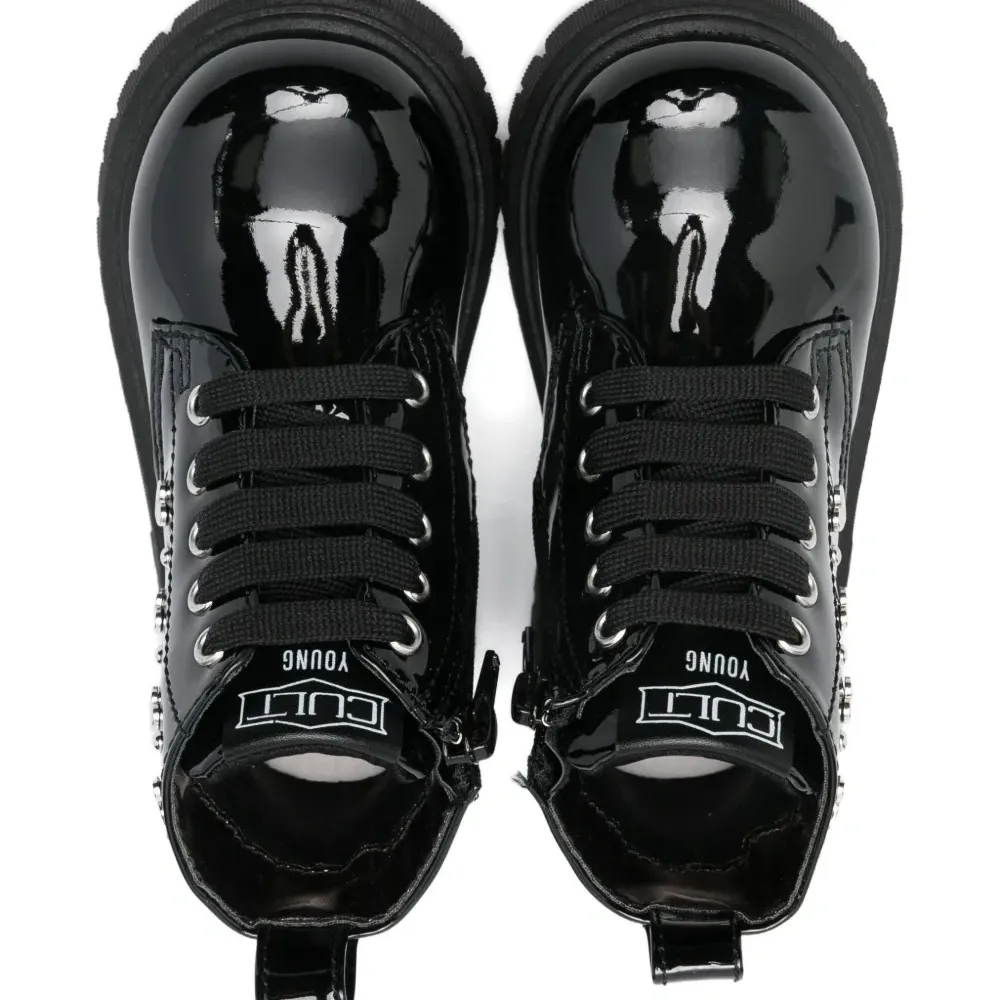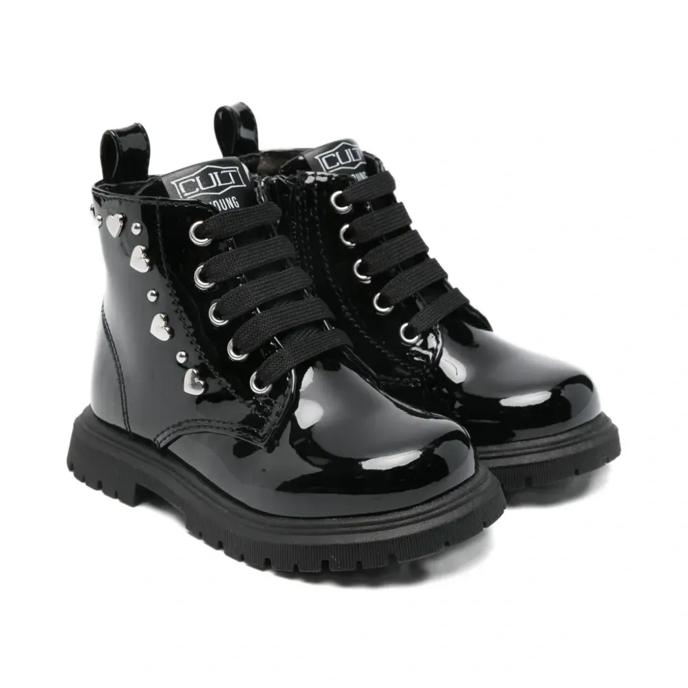 черный лакированная кожа шнуровка декор в виде заклепок-сердечек рельефная резиновая подошва застежка-молния