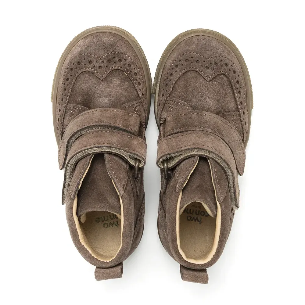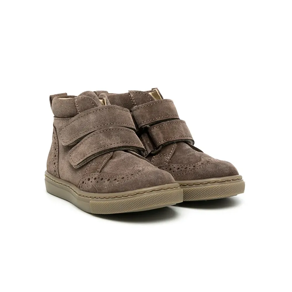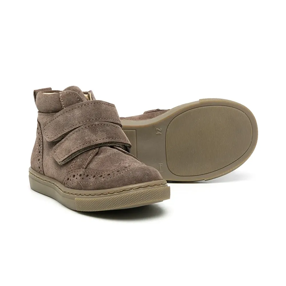 Закругленный носок, застежка на липучке и плоская резиновая подошва.