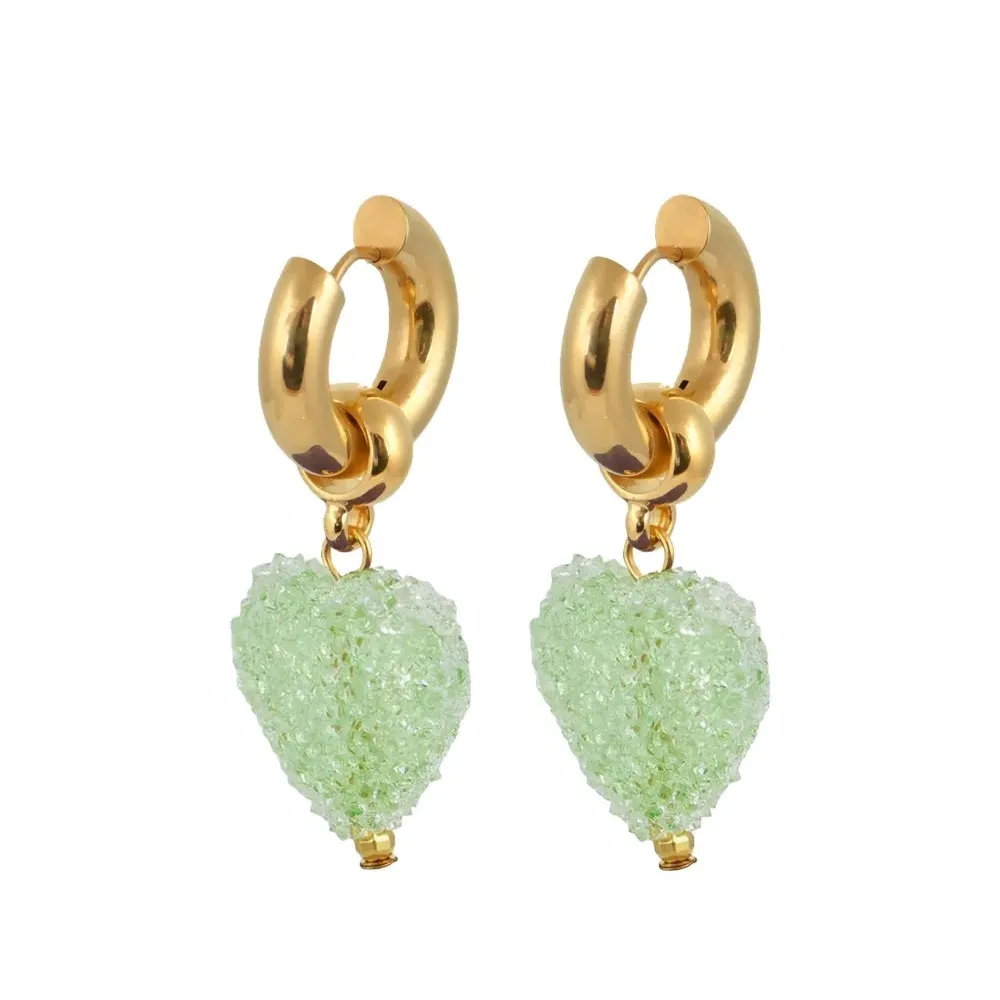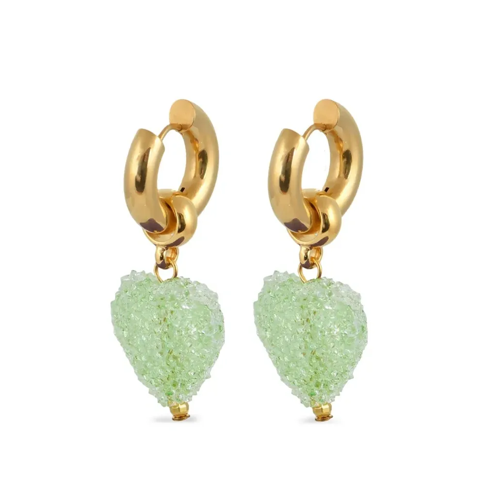 металlic с полированной отделкой, подвеска в виде сердца, застежка-крючок. Эти серьги идут в паре.