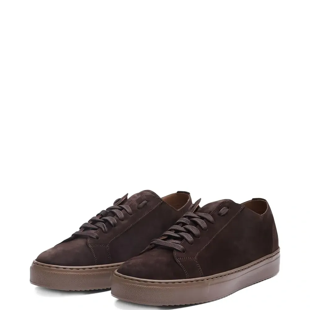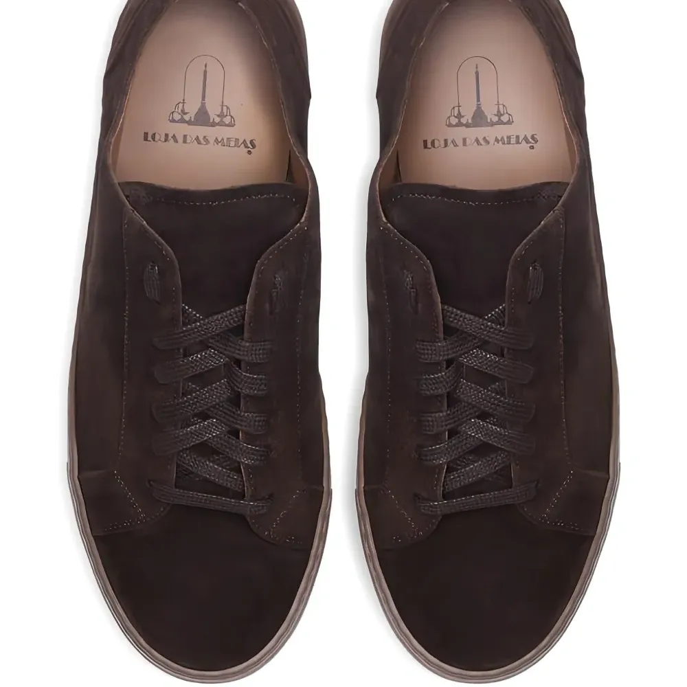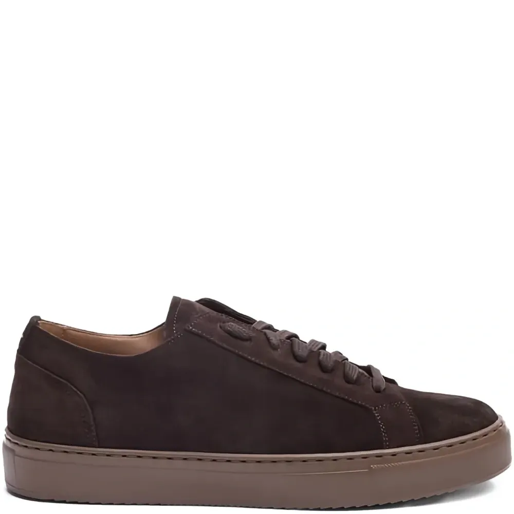 коричневый замш, круглый носок, шнуровка, плоская подошва, однотонная строчка