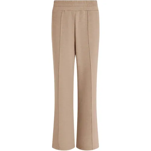 нейтральные широкие брюки с эластичным поясом и отделкой по швам