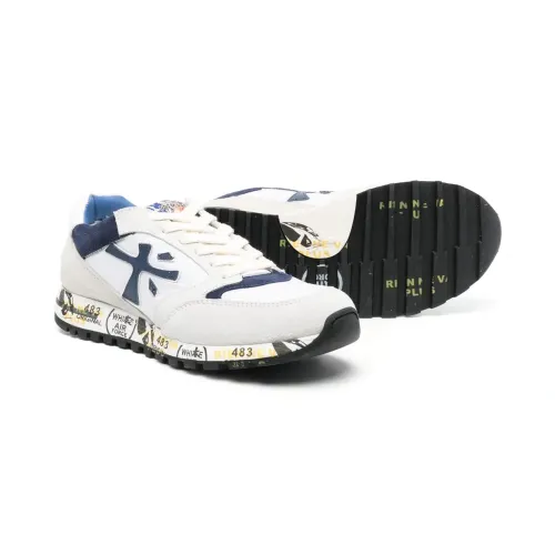 Белый, замшевые вставки, нашивка с логотипом сбоку, нашивка с логотипом на язычке, логотип на подошве, вставки, закругленный носок, шнуровка спереди, стелька с логотипом и плоская резиновая подошва.