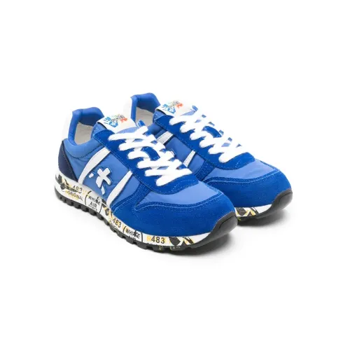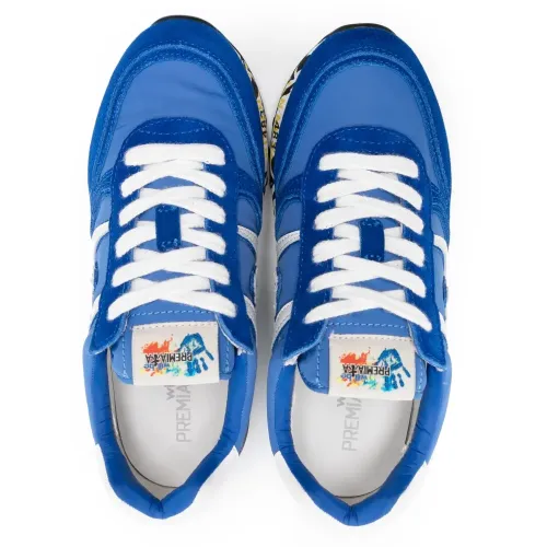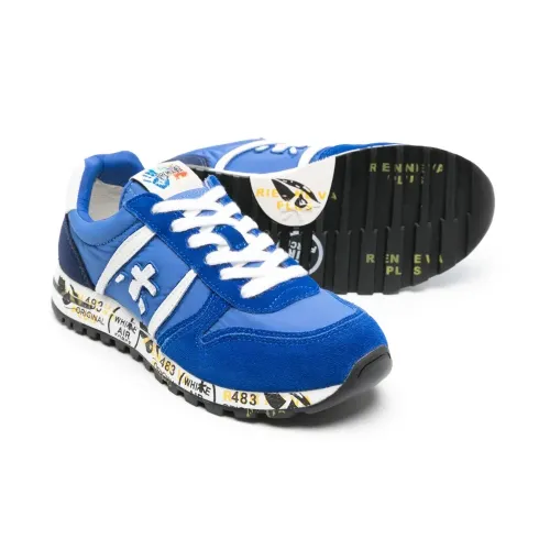 Синий, разноцветный, замша из телячьей кожи, строчка в тон, вставки, контрастный задник, нашивка с логотипом на язычке, нашивка с логотипом сбоку, закругленный носок, шнуровка спереди, кожаная стелька с логотипом и рифленая резиновая подошва.