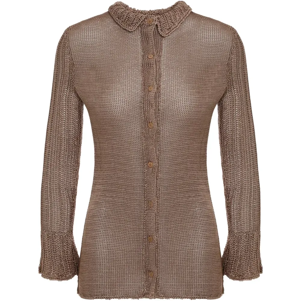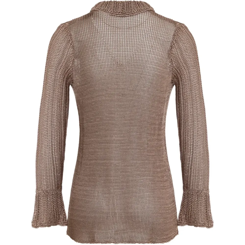 медный цвет, воротник, застёжка на пуговицы, длинные рукава, расклёшенные манжеты