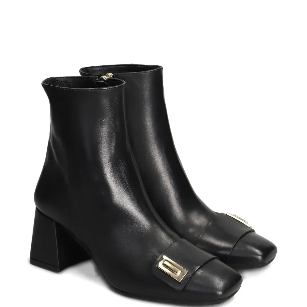 Ботильоны с квадратным носком и пряжкой на каблуке 65 мм