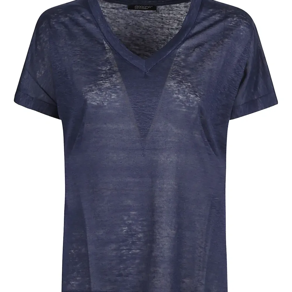 Льняная футболка с V-образным вырезом