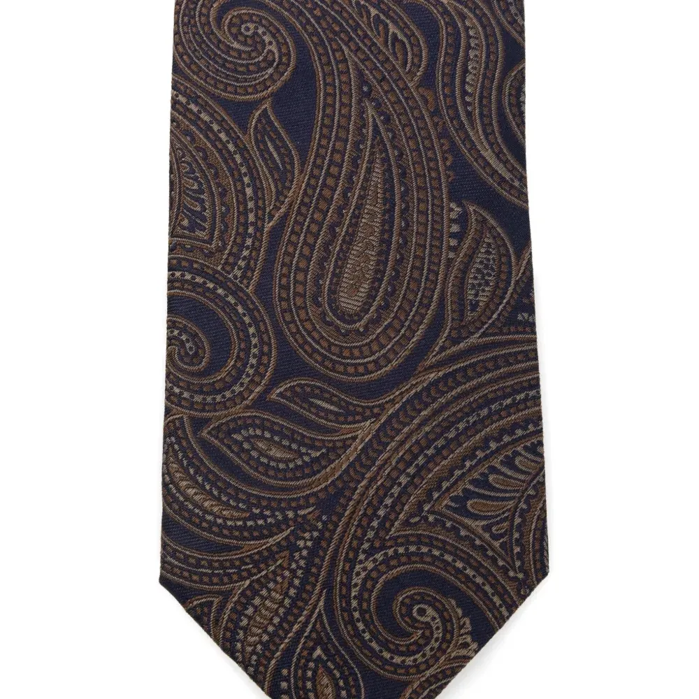 коричневый галстук с узором «пейсли» и заострённым концом