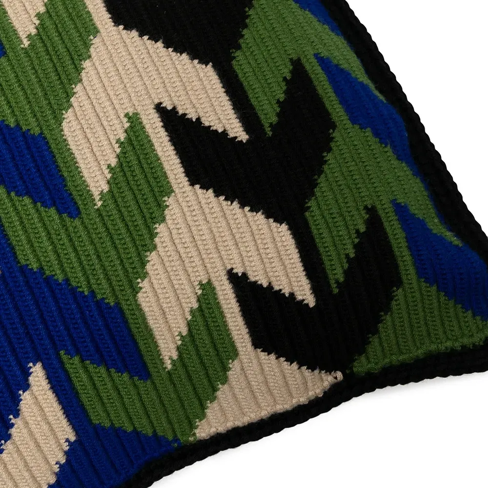 Жаккардовый материал с узором, контрастная отделка, прямоугольная форма и нашивка с логотипом сзади.