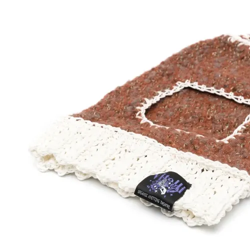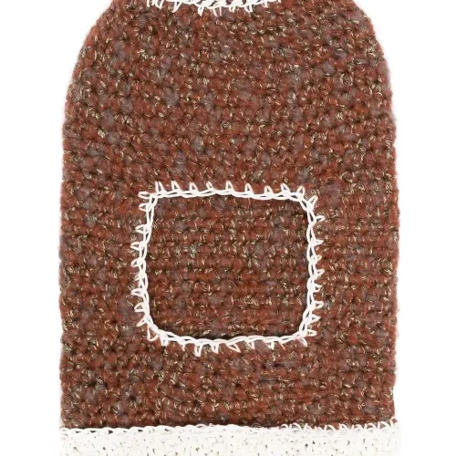 Коричневый, белый, кроше, бирка с логотипом, контрастная строчка, модель без застежки, контрастная отделка и модель анорак.