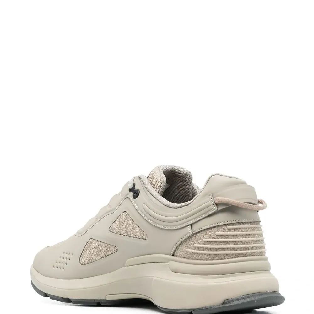 Светло-серый, язычок с логотипом, петля для подтягивания сзади, шнуровка спереди, стелька с логотипом, закругленный носок и массивная резиновая подошва.