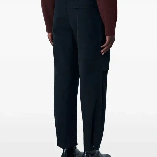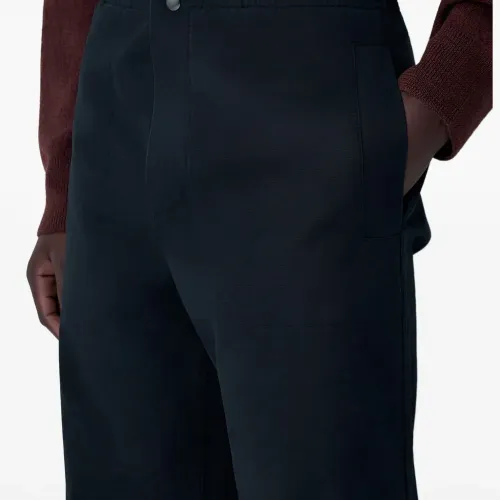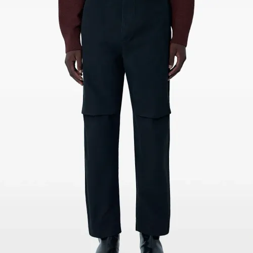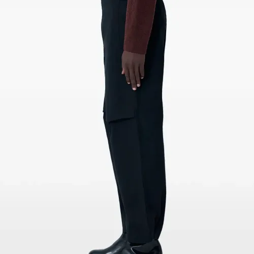 черные с изогнутой текстурой, застежка на кнопки, эластичный пояс, боковые прорезные карманы, задний карман с листочкой