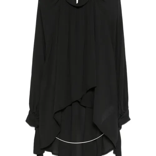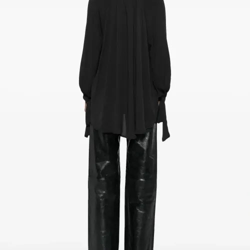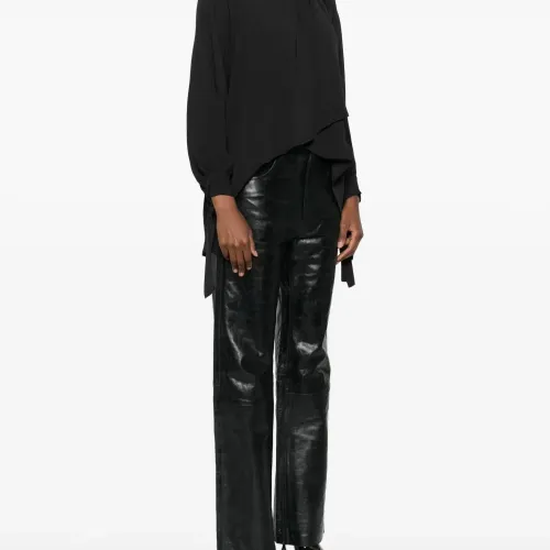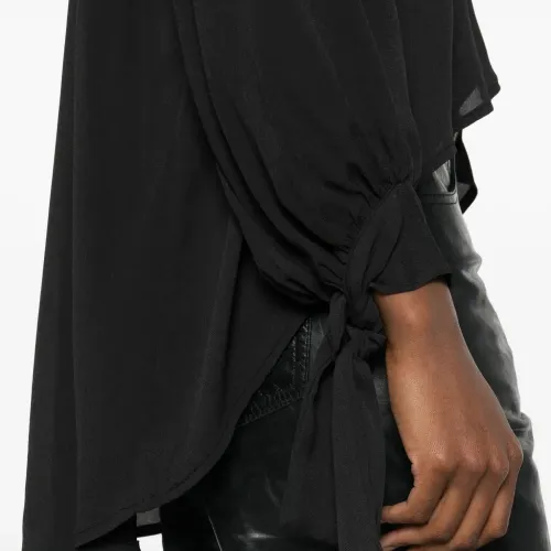 черная водолазка с длинными рукавами, асимметричным подолом, завязками и присборенными манжетами