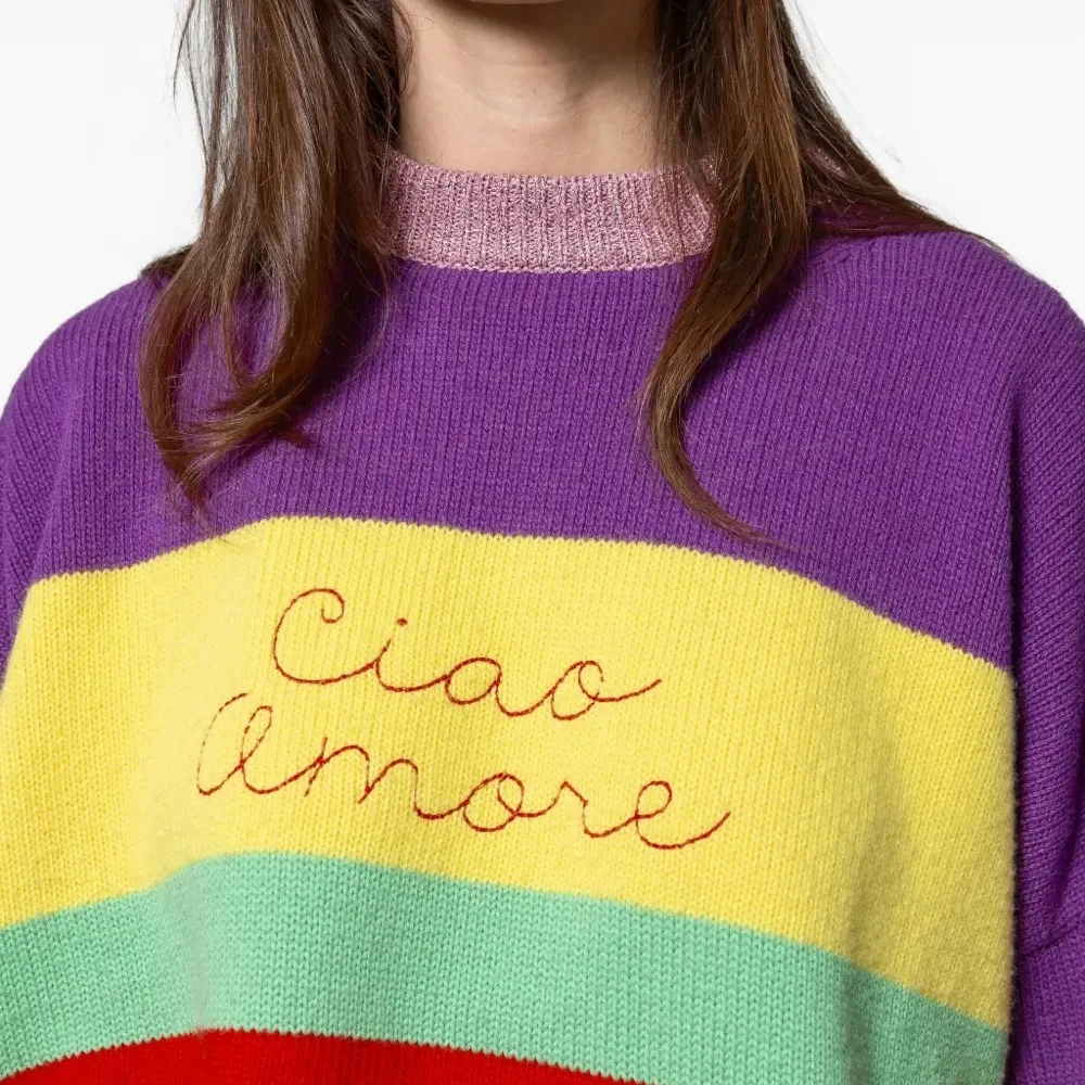 Полосатый вышитый свитер