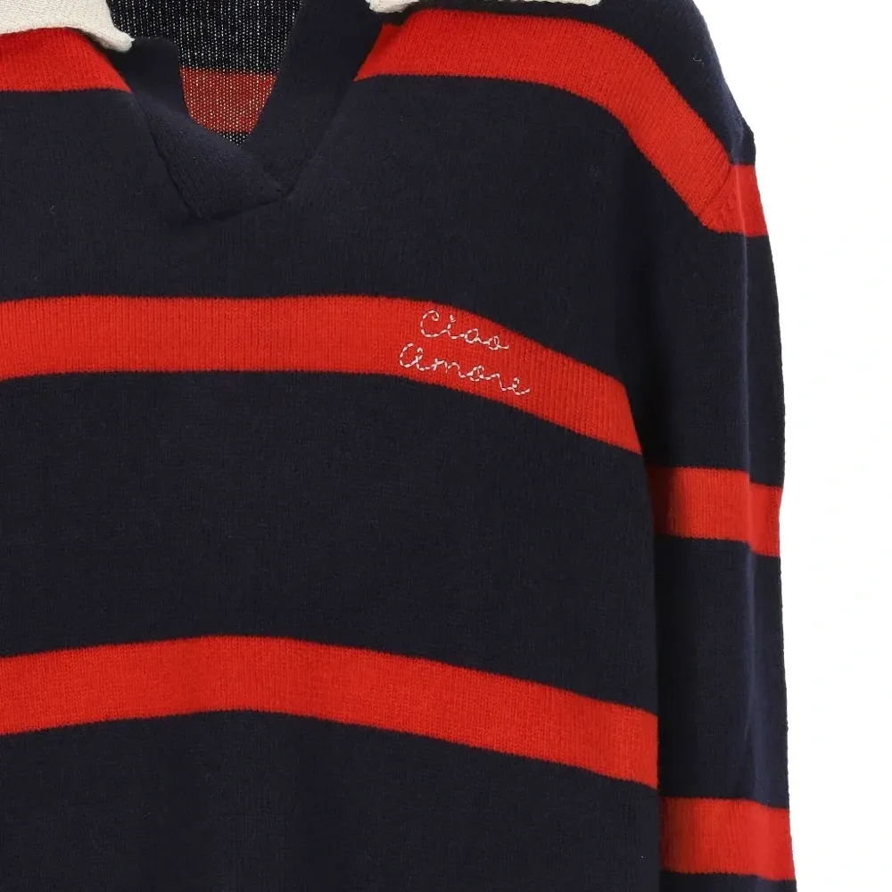 Полосатый свитер с воротником-поло