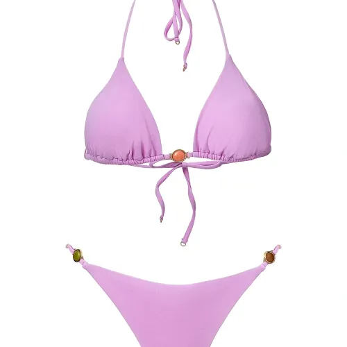 фиолетовый топ-треугольник с завязками и декоративными элементами. Пожалуйста, примерьте купальник поверх собственного белья.