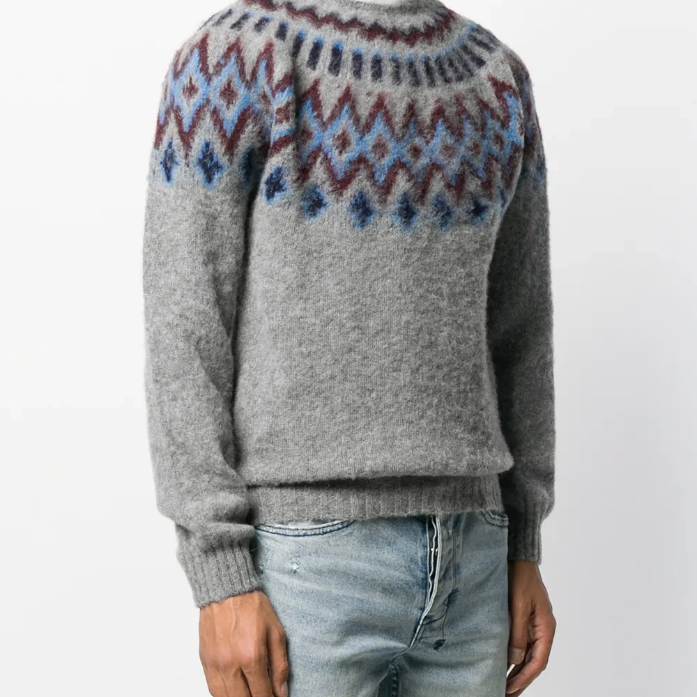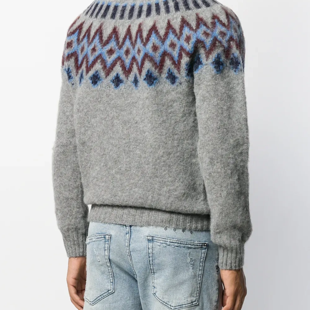 Джемпер Future Fantasy от Howlin'. Жаккардовое вязание, круглый вырез под горло, длинные рукава и подол и манжеты в рубчик. Цвет: серый.