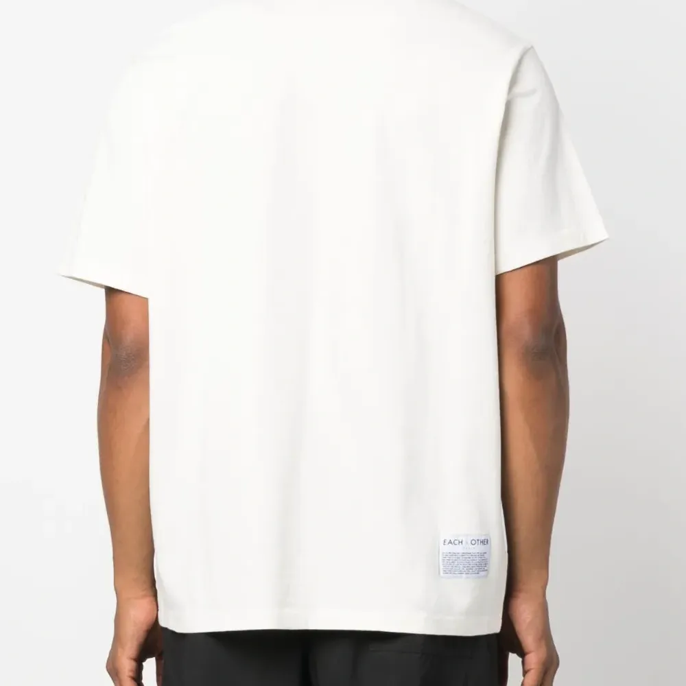 Кремовый, хлопок, ткань джерси, принт с логотипом на груди, круглый вырез, короткие рукава и прямой подол.