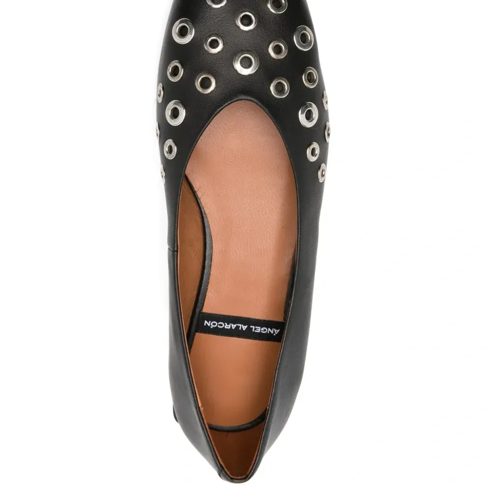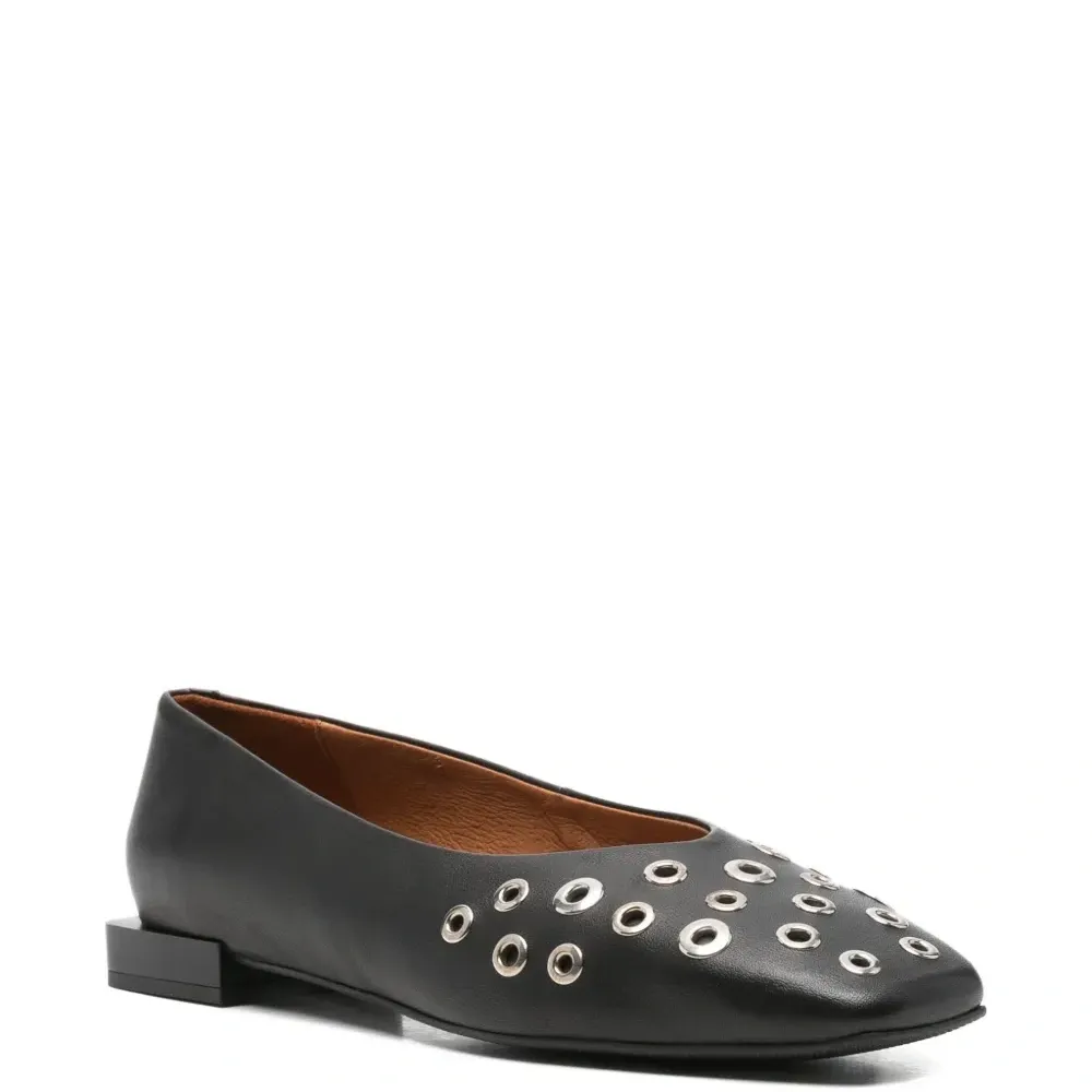 Балетки с квадратным носком и украшением в виде люверсов