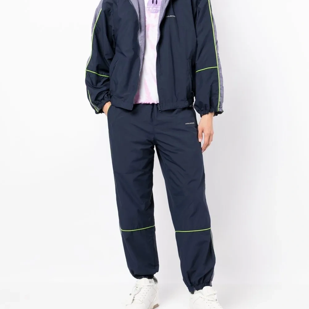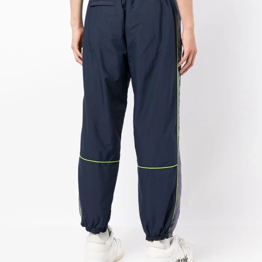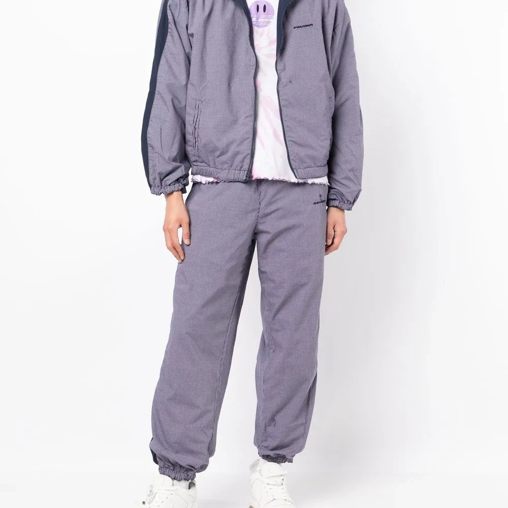 Темно-синий, хлопок, легкий материал, вставки, клетчатый узор, логотип сбоку, эластичные манжеты и эластичный пояс. . Узнать больше о том, какие товары получают отметку «Ответственный выбор», можно из материала «Как мы оцениваем экологичность и этичность».