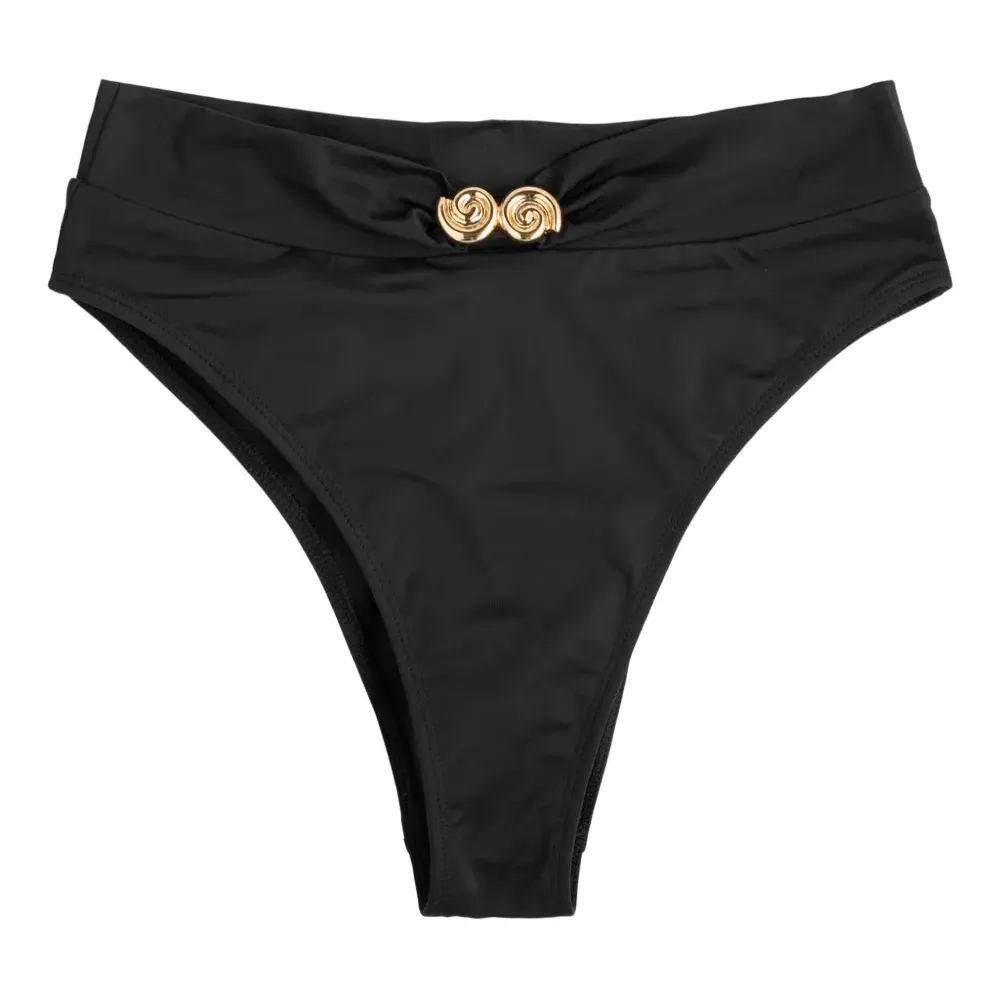 черный, фурнитура под золото, деталь с перекрутом, высокая талия, высокий вырез на бедре. Пожалуйста, примерьте купальник поверх собственного белья.