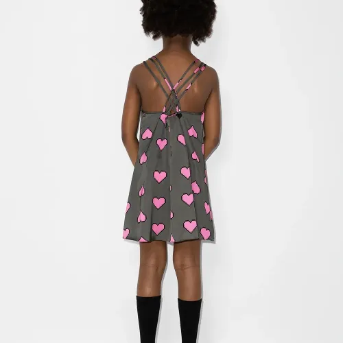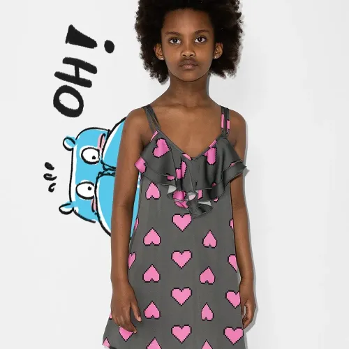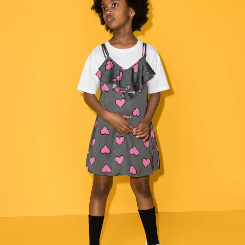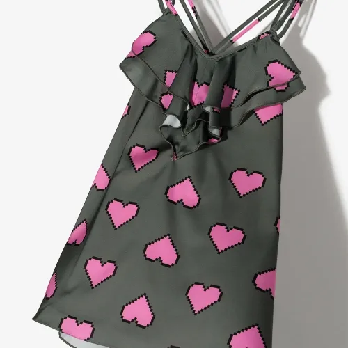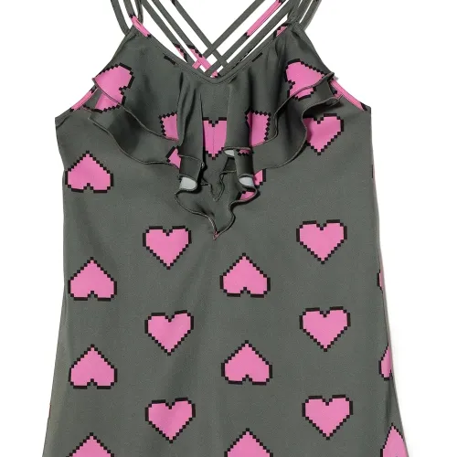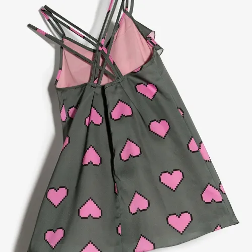 Темно-серый, нежно-розовый, хлопок, принт с изображением сердца, тонкие бретели и вставки с оборками.
