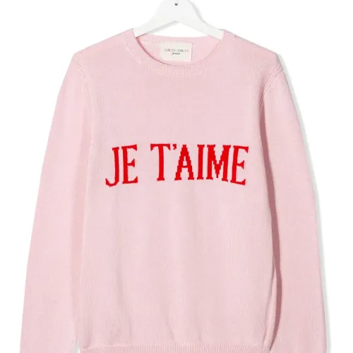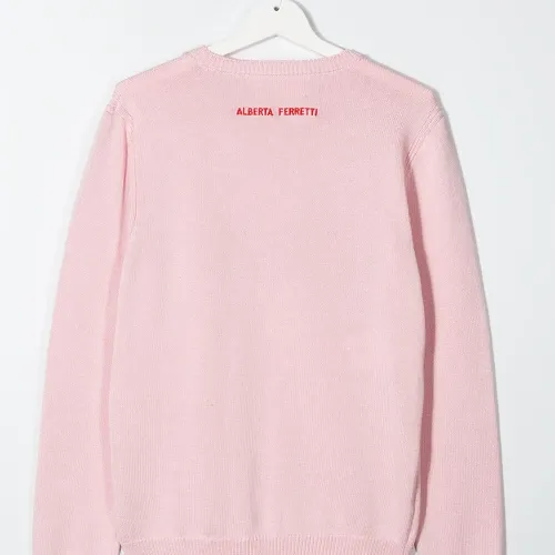 Джемпер с вышитой надписью от Alberta Ferretti Kids. Декоративный слоган, круглый вырез и длинные рукава. Цвет: розовый.
