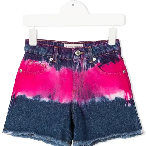 Джинсовые шорты с принтом тай-дай