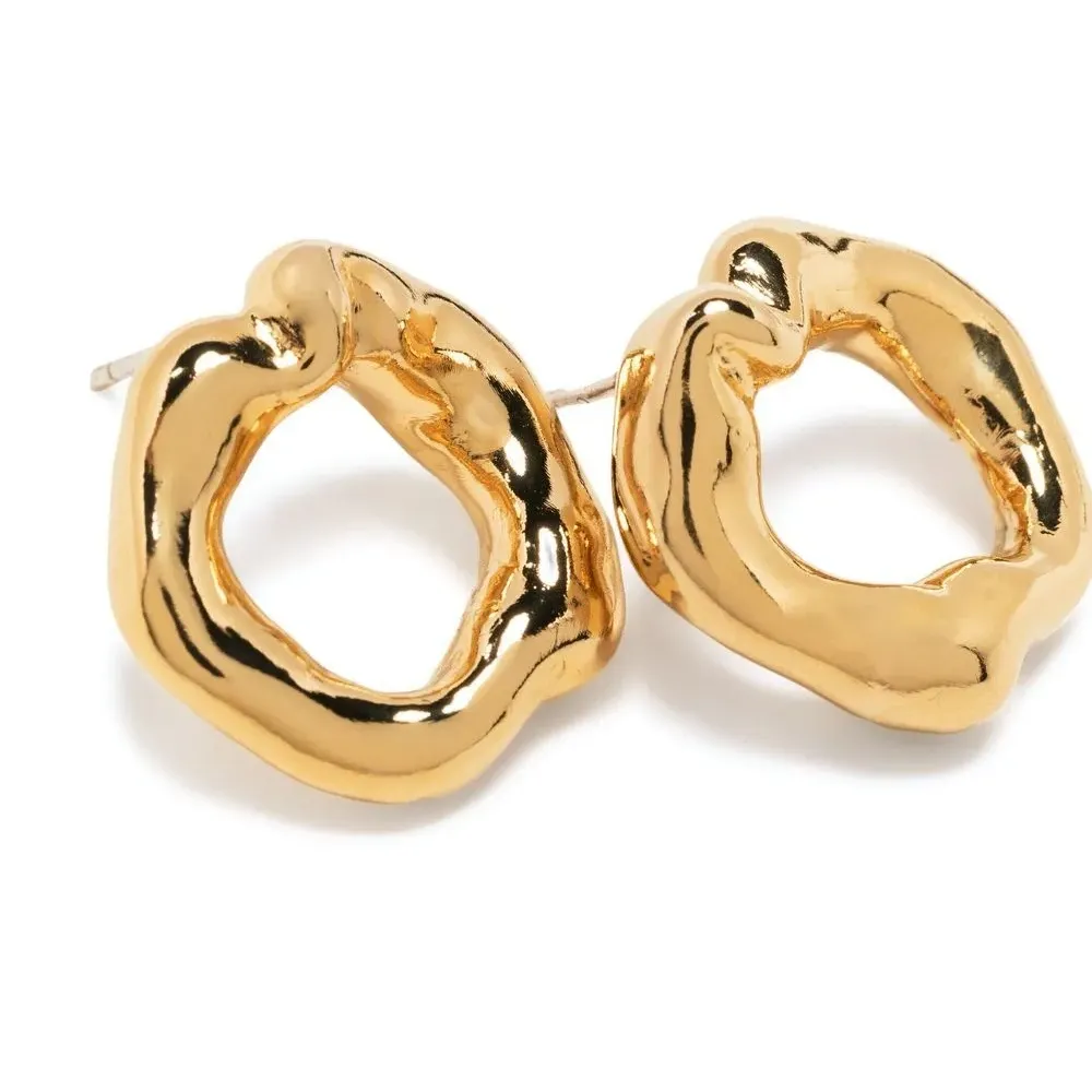 Латунь, серебро 925 пробы, застежка-штифт, эффект чеканки, глянцевая фактура и для проколотых ушей. В комплект входят две серьги.