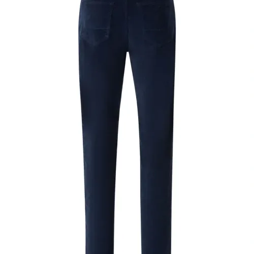 темно-синий контрастная строчка боковые карманы задние карманы застежка спереди расклешённый низ