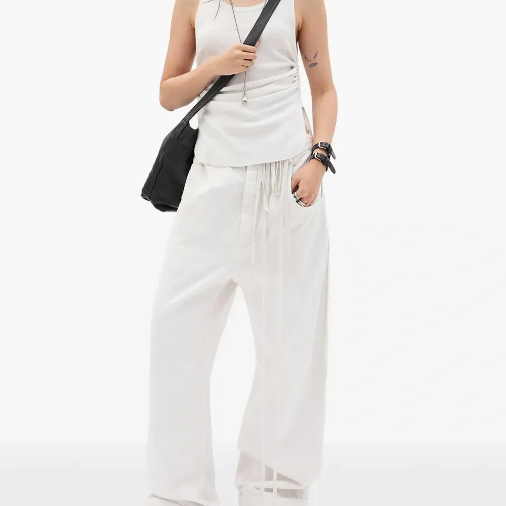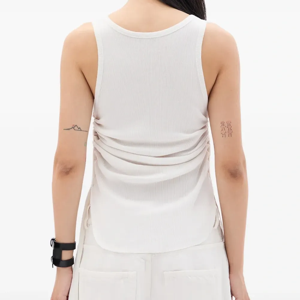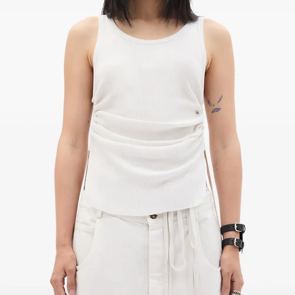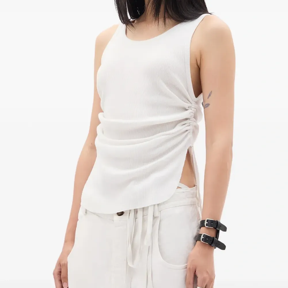 Хлопковый вязаный топ в рубчик цвета «слоновая кость» со сборками