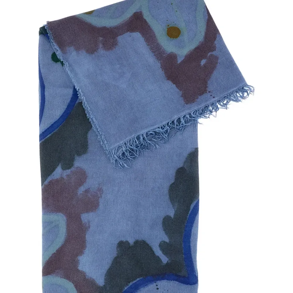 Шарф с цветочным узором и бахромой