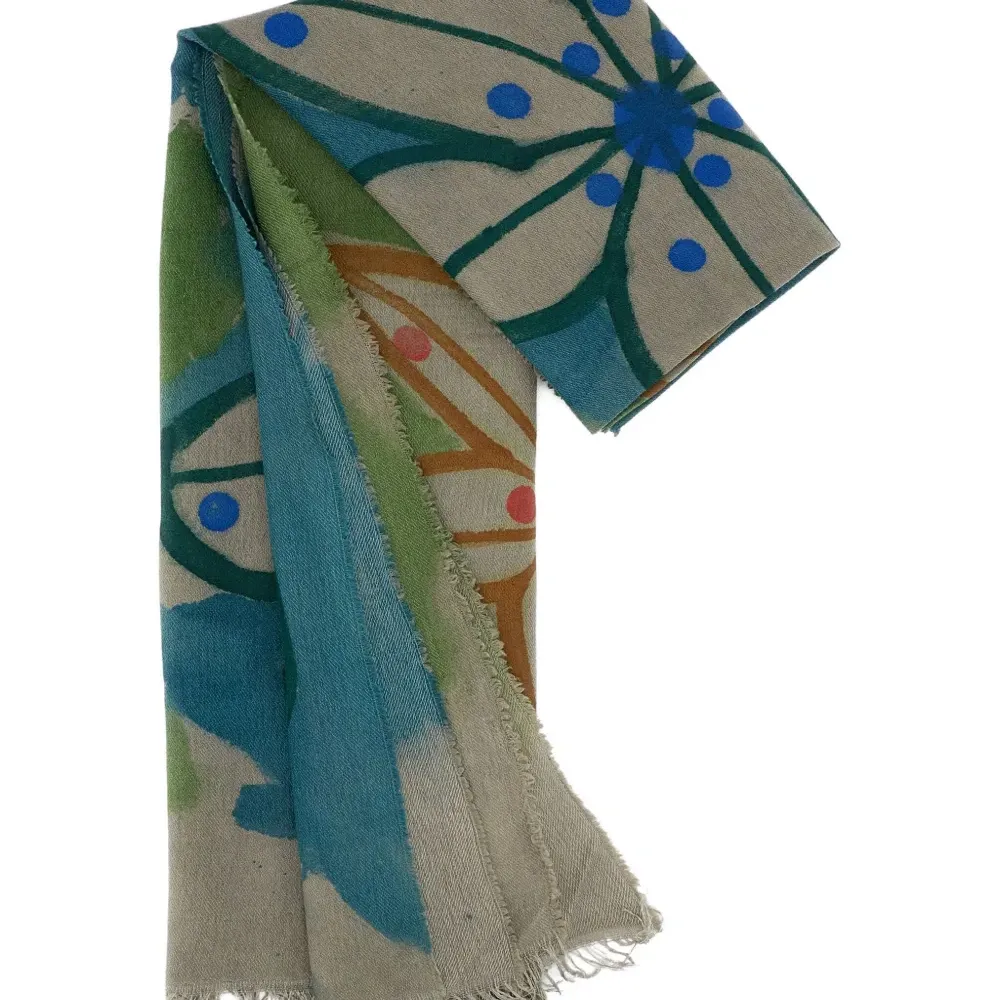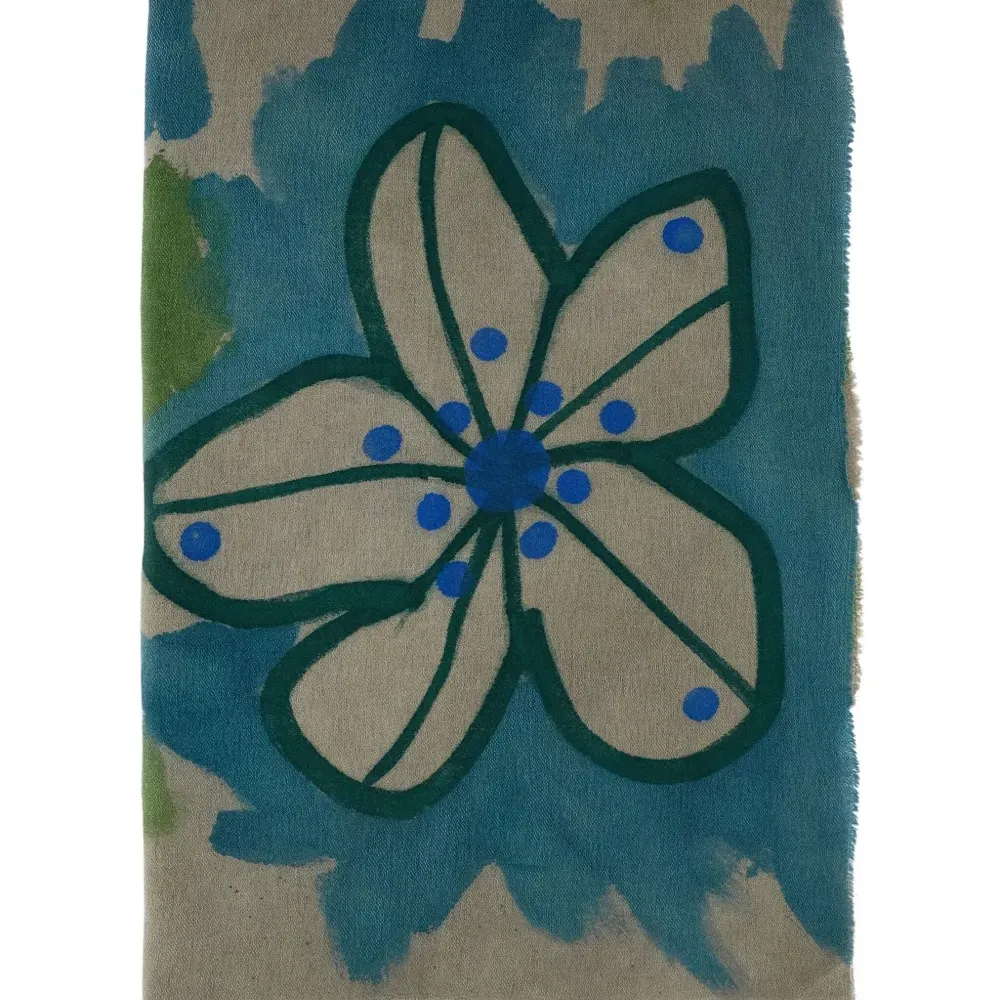 Шарф с цветочным узором и бахромой