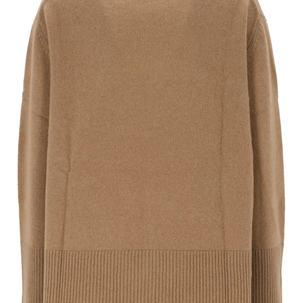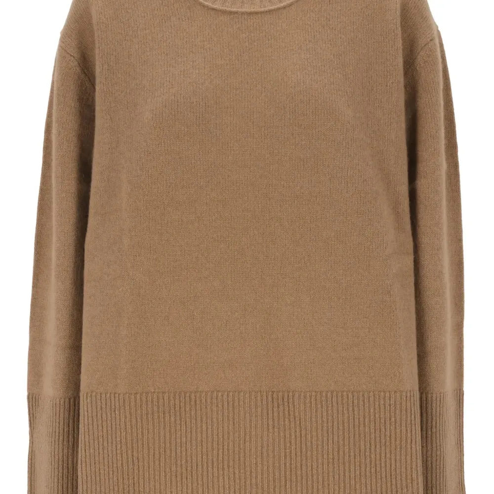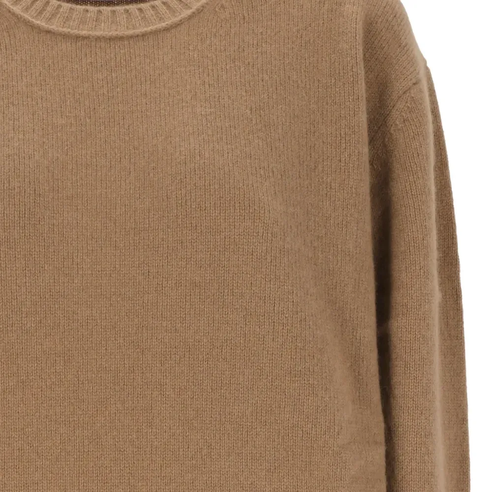 коричневый свитер с круглым вырезом, в рубчик по низу и манжетам, длинные рукава